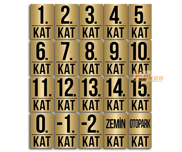 Farklı çeşitleri bulunabilen bu ürünler bulunduğunuz katı bir sayı ile ifade eder, Zemin ve alt katlar dışında otopark yazıları da ürünlerimiz arasında bulunuyor.